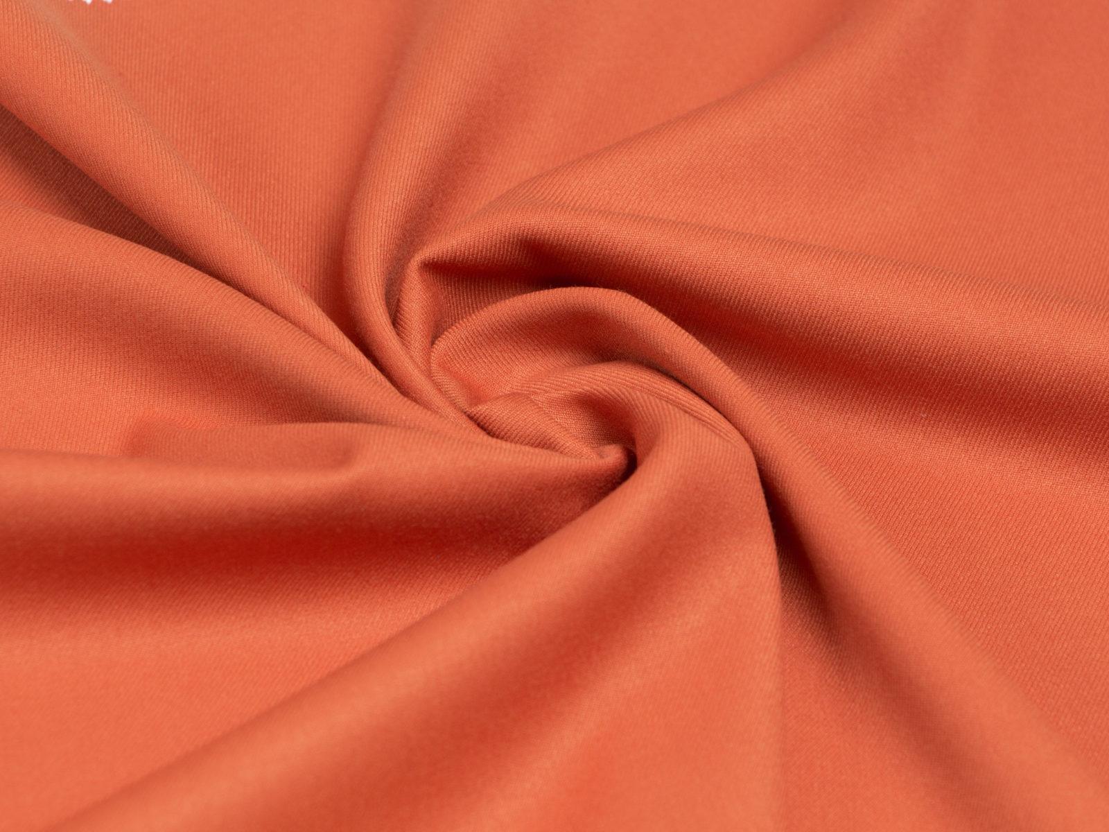 Поливискоза — это идеальный материал для пошива одежды. Он состоит из 65% полиэстера, 32% вискозы и 3% спандекса. Плотность материала составляет 402 г/м.п., ширина — 145 см. Поливискоза произведена в Китае и имеет оранжевый цвет. Она прекрасно держит форму, приятна на ощупь и долго сохраняет свои свойства.
